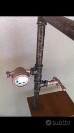Vendo lampada fatta con tubi idraulici,rubinetto,ripiano e contatore dell'acqua.Colore nero e rame;altezza 1,70 metri