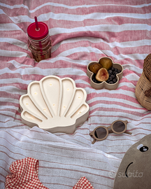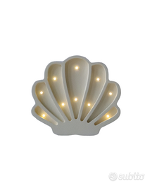 Lampada decorativa a forma di conchiglia, realizzata in legno e plastica. Le luci LED integrate creano un'atmosfera accogliente. - Design a forma di conchiglia. - Illuminazione a LED. - Materiali: legno e plastica.