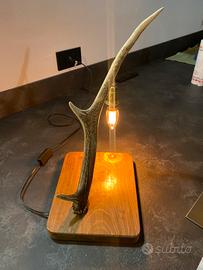 Vendo lampada artigiale in corno di cervo con base in vero legno,lampada con interruttore