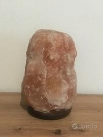 Lampada in cristallo di sale rosa dell'Himalaya lavorata a mano, con base in legno di cedro e luce calda rilassante a LED.