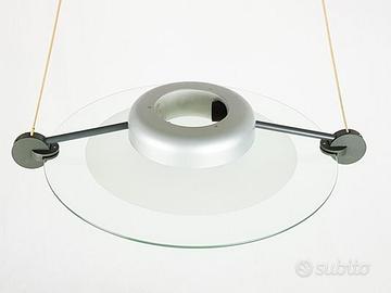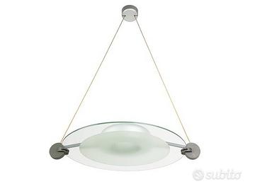Bellissima lampada di design progettata dall'architetto Michele De Lucchi nel 1985 per Artemide. La lampada è a sospensione, in vetro lucido e satinato, con tiranti per l'attacco al soffitto. Il diametro misura circa 70 cm.