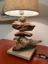 Lampada d'arredamento realizzata con legni marini stabilizzati