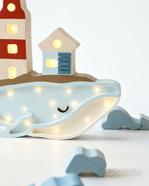 Handmade Wooden LED Lamp – safe, dimmable night light for kids. Featuring woodland, sea & celestial designs, eco-friendly and Montessori inspired. Dimensions: 37 x 29 x 5 cm. Power supply: Low-voltage AC 100-240V – DC 5V power adapter. Diode life approximately 10,000 H. Material: Solid spruce wood panel, warm white 1.2W LED lights, white cable with dimmer length 1,5 m. Maintenance: Wipe with a dry cloth. Wall-mountable Certifications: CE, RoHS Internationally registered design