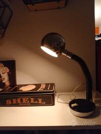 Splendida lampada da tavolo vintage dal design iconico degli anni '70/'80. Un pezzo d'arredo perfetto per chi ama lo stile modernariato e vuole dare un tocco originale allo studio. Paralume a sfera (modello "eyeball") in metallo cromato lucido. Collo "gooseneck" (a collo di cigno) flessibile rivestito in gomma nera, che permette di orientare la luce in ogni direzione. Base circolare stabile con interruttore a pressione integrato (colore bianco).Rifiniture cromate che riflettono la luce, creando un bellissimo effetto specchiato.