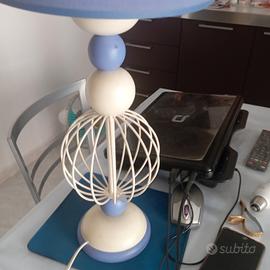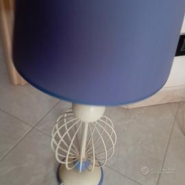 lampada da arredamento bianco e blu -viola. legno e ferro.