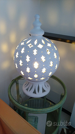 Vendesi lampada da arredo in ceramica bianca di grandi dimensioni. La lampada è composta da una base con la lampadina e dal "cappello" poggiato sopra la base. Assolutamente stabile.