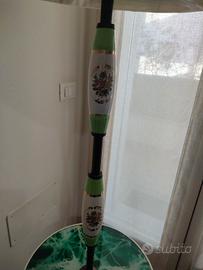 lampada da arredo anni 60 molto bella con due ceramiche dipinte oro zecchino ,il piano ricoperto di tovaglia in velluto,funzionante