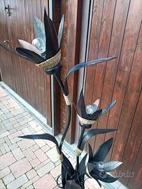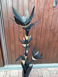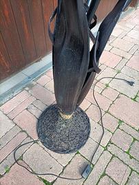 Lampada da arredo funzionante e come da foto; presenta qualche segno di utilizzo e del tempo. E portante in ferro ed il resto sembra materiale ligneo. Sembra materiale naturale essicato. È pissibile visionarla di persona