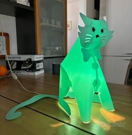 Bellissima lampada da cameretta per bambini a luce soffusa, tutta fatta in un unico foglio di plastica tagliato e piegato a forma di gattino. Completa di lampadina. Ai bambini e ai ragazzi piacerà moltissimo così come piaceva ai miei figli da piccoli