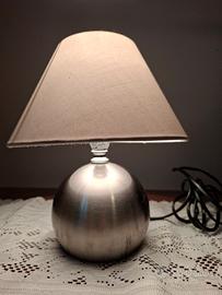Vendo una lampada da comodino con base in metallo funziona perfettamente la lampada si accende e si spegne toccando la base con la mano misura 23 cm di altezza per 20 cm di larghezza sul paralume la base ha un diametro di 12 cm, la lampada si vende senza lampadina