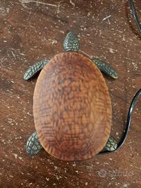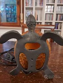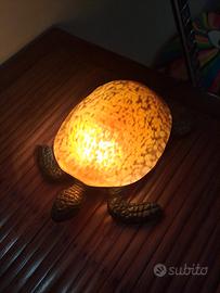 Bellissima lampada da comodino a forma di tartaruga, in metallo (struttura) e vetro (carapace).