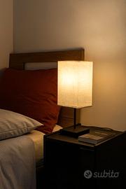 Il paralume quadrato in lino, dalla texture naturale, diffonde la luce in modo uniforme e soffuso. Si abbina elegantemente alla base in metallo nero, in un design semplice e raffinato. La lampada da comodino è compatta e salva-spazio.