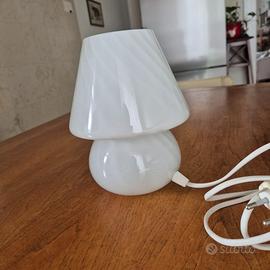 Lampada a fungo bianca in vetro di Murano, Marca Perenz ( atigianato italiano di Belluno). Murano Mushroom Swirl lamp. Anni '70. E' una lampada dal design immortale, che si adatta a qualsiasi ambiente, e rappresenta un simbolo dell'artigianato italiano nel mondo.