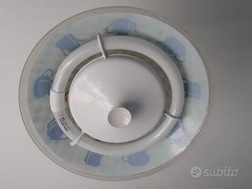 LAMPADA DA CUCINA in vetro, di colore bianco e azzurro decorata con un motivo con piccole teiere, vendo euro 10.