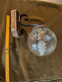 lampada muro da esterno o taverna bellissima con zoccoletto in legno e supporto in ferro battuto completa di lampadina led