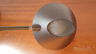 Dettagli: lampada da lettura con struttura in metallo laccato nero e plastica, sfera di contrappeso in metallo laccato grigio.