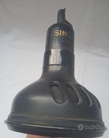 lampada a braccio basculante per macchina da cucire Singer SLF anno 1945 originale, in bachelite e metallo, ( sono da risaldare i fili dell'interruttore, manca le lente in vetro e le scritte sono poco visibili, oggetto di rara reperibilità il prezzo non è trattabile. misura altezza braccio cm 25 diametro 8.