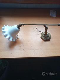 Lampada da parete antica in ottone, lume vetro bianco opaline: Snodabile