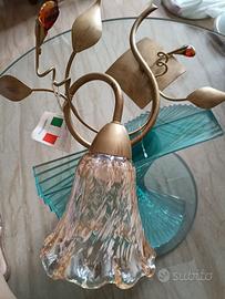vendo causa inutilizzo lampada da parete/ applique in stile classico/floreale con vetro lavorato e struttura in metallo ancora con cartellino