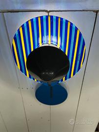 Lampada da parete FOSCARINI Serie ROLLI di C.A.Urbinati,Ricci e A.Vecchiato. Vetro a canne Giallo, Blu e Acquamare; stelo e base in metallo laccato Antracite e Vlu Metalizzato ,all’epoca montava una lampada alogena bispina a 12 volt da 100w (nella foto ho montato una lampada LED da pochi w. Misure cm.45 H. X 25.Negli anni costava in Lire 440.000. La mia richiesta oggi è di 140€. NON SPEDISCO solo ritiro a mano!