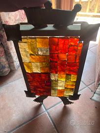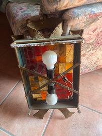 Vendo lampadario da parete vintage in vetro colorato spesso e struttura metallica dorata, dal design unico a forma di scudo con corona e piedi. Oggetto molto pesante, realizzato interamente in vetro colato e metallo massiccio. Prezzo 150€ trattabili