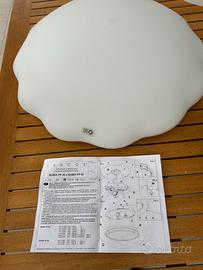 Leucos Nubia lampada da parete e soffitto dimensione 60cm con diffusore in vetro soffiato bianco satinato. La struttura è in metallo verniciato bianco.