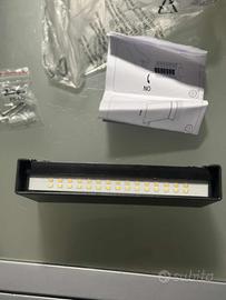 Applique LED di alta qualità con potenza di 6 W. Design a forma di cubo con dimensioni di 17,5 × 9 cm. Impermeabile e antipolvere, sicura e affidabile. La temperatura di colore è selezionabile: 3000 K bianco caldo, 4000 K bianco neutro e 6500 K bianco freddo.