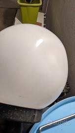 lampada da parete per esterno usata come in foto. lunga 32 cm base in ferro e sfera in plastica (leggermente deformata) funzionante. a 220v con lampadina E27 fissaggio a parete con 2 viti per info telefonate 3281367585