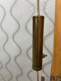 braccio telescopico in ottone con un inserto centrale rivestito in pelle e dettagli a collare zigrinato. Paralume in metallo laccato nero e bianco. Misura chiuso a centro lampada 73 cm estensione massima 132 cm escluso paralume. Poco trattabile
