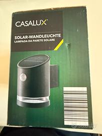 Vendo lampada da parete solare, realizzata in acciao inox e rilevatore di movimento. Batteria ricaricabile alla luce del sole. 2 livelli di luminosità. 2 led bianchi da 0,5w.