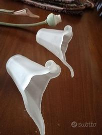 Vendo lampada da parete in metallo lavorata con foglie e fiori dipinti ,con 2 luci e campana in vetro opale nessun danno ,prezzo 30 EURO, per info. tel 3472446608 ore pasti o serale .