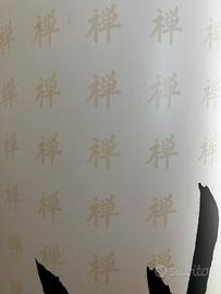 Gloriosamente vintage (tra i primi prodotti casa della SLAMP) e di design. Stile minimalista, e leggerissima. Facilissima istallazione ed accensione/spegnimento. Funziona con 2 lampade a risparmio energetico o LED, facilmente accessibili. Riporta sul pannello anteriore l'ideogramma "zen", che a sua volta è riproposto come sfondo (con colore tenue) sull'intero pannello anteriore.