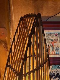 Lampada da salotto in bamboo a forma di surf, balinese, con due attacchi per lampadina, altezza 165, larghezza 40.