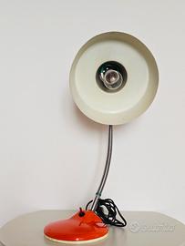 Prodotta in Ungheria nello stabilimento di Szarvasi interamentedi metallo, no plastica. Colore arancio puro e perfettamente funzionante. Segni di usura (vedi foto) si notano in alcuni punti. Misure: altezza massima 53 cm,diametro base 18 cm,diametro paralume 25 cm,lunghezza cavo 1,8 m,peso 2,4 chilogrammi.