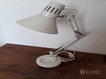 Lampada da tavolo scrivania da lavoro Snodata, regolabile In metallo Colore bianco Usata poco Attacco edison E27 Funziona con lamadine ti tutti i tipi, incandescenza, alogene, fluorescenti compatte basso consumo risparmio energetico o a led Max 75 watt