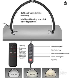 Design a mezzaluna: cappello della lampada grande 28 pollici, pieghevole e regolabile, riempimento della luce omnidirezionale, il design a mezzaluna è utilizzato per fornire un'illuminazione uniforme, può ottenere un'illuminazione mirata, senza ombre e non danneggia gli occhi.