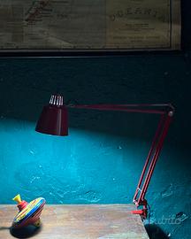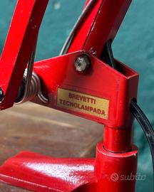 Lampada da architetto vintage Brevetti Tecnolampada, prodotta in Italia negli anni '70 di un bellissimo colore rosso, caratterizzata dal sistema di molle a scomparsa brevettato dall'azienda.