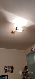 Lampadario da soffitto alogeno comprensivo di lampada da 150w, corpo in metallo e vetro con basetta in legno. Utilizzabile anche come applique (al massimo consigliato su superfici ampie) Condizioni ottime, pari al nuovo