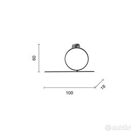 Lampada plafoniera moderna Acrobat 50 a Led di forma circolare, realizzato in metallo con diffusore siliconico. Lampada perfetta per chi vuole illuminare l'ambiente in modo diffuso, grazie alle due sorgenti led presenti sulla barra e all'esterno del cerchio. Svolgendo anche la funzione di complemento d'arredo, questa plafoniera a led illumina ed arreda uniformemente qualsiasi stanza in cui venga installata. CARATTERISTICHE Colore: Nero Materiale: Metallo con diffusore siliconico Tipologia: Plafoniera Larghezza: 100 cm Altezza: 60 cm Profondità: 2 cm Dimmerabile: si Illuminazione: LED integrato Potenza: 42W 2100-4200LM Input: 220-230V Colore luce: 3000K Svendita per cambio vetrina. Prezzo di listino: 481,90€ Sconto: -60%