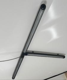 La seconda lampada è composta da due bracci tubolari che si uniscono in un punto centrale, creando una forma a "L".