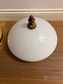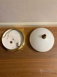 Lampada da soffitto vintage da incasso con paralume in vetro opalino e raccordo in ottone Disponibili 2 pezzi Vendibili separatamente