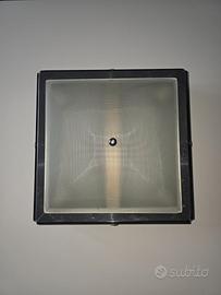 Progettata da VECA secondo lo stile FONTANA ARTE, Vintage '70, telaio metallico quadrato con lastre laterali stondate in vetro fume'. Dimensioni lunghezza 30 cm x larghezza 30 cm x profondita' 12 cm