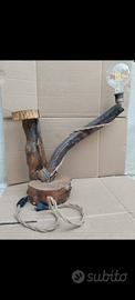 Lampada realizzata a mano con legno di castagno stagionato. Ideale per un atmosfera calda come si può vedere dal filo intrecciato,dal portalampada in rame e la lampadina a filamenti.