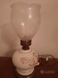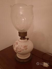Lampada da tavolo con base in porcellana disegnata e boccia portalampadina in vetro della Società porcellane artistiche (vedi foto). Come nuova
