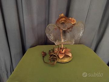 lampada da tavolo 1 luce verniciata con decorazione a mano con vetro cristallo e ambra d.15cm h.31cm