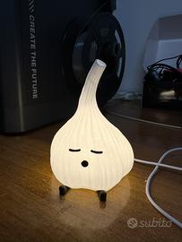 Lampada da tavolo a forma di aglio, realizzata in stampa 3D. Design simpatico e moderno, ideale come luce notturna o elemento decorativo. • Alimentazione USB • Interruttore ON/OFF sul cavo • Luce soffusa e rilassante • Perfetta per comodino, scrivania o come idea regalo originale Prodotto artigianale, curato nei dettagli, per più quantità non esitate a contattarmi!
