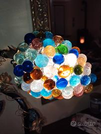 Caratteristiche: Paralume multisfere in vetro di murano colorato, base decorata in metallo.