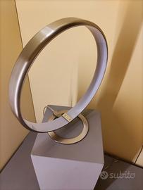 Splendida lampada da tavolo a forma circolare in nichel opaco.