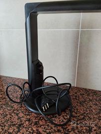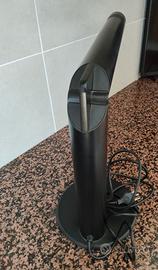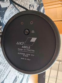 Lampada da tavolo Abele by Gianfranco Frattini per Luci. Alluminio laccato nero, dotata di dimmer funzionante per variare l’intensità, interruttore e cavo originali, compresa di lampadina alogena, funzionante. Lievi segni del tempo. Dimensioni: h. 37 cm – Diametro base 28 cm – profondità 57 cm