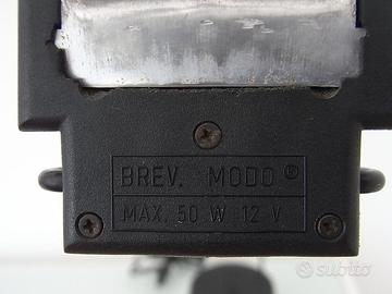 Stupenda lampada da tavolo anni '70 disegnata da Gabriele Basilico per Alva-Line, modello "Modo". Monta lampadina alogena max. 50W 12V. L'interruttore di accensione ha 2 posizioni per 2 diverse intensità di luce. Il basamento ha un diametro di 11 cm. Il braccio è lungo 75 cm ed infulcrato ad un'altezza di 31 cm. Dal fulcro al contrappeso misura 25 cm, dal fulcro alla testa della lampada 50 cm. Ottime condizioni di conservazione e perfetta funzionalità.